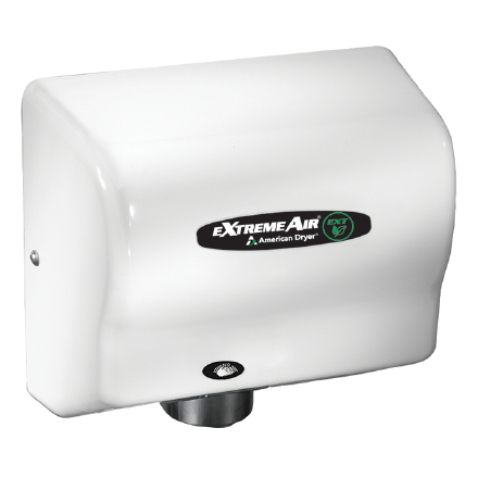 The eXtremeAir® series are compact high-speed hand dryers. The series is composed of the eXtremeAir GXT and the eXtremeAir EXT. Their high energy efficiency, durable construction, and universal voltage features accommodate any commercial washroom environment.